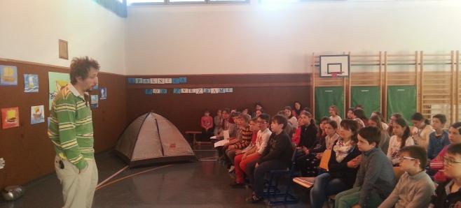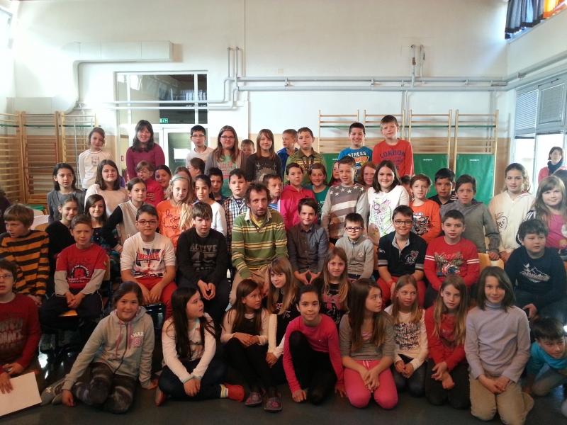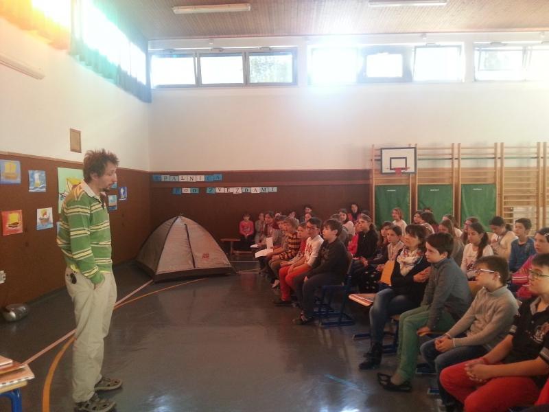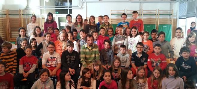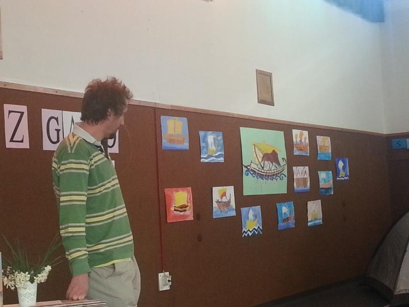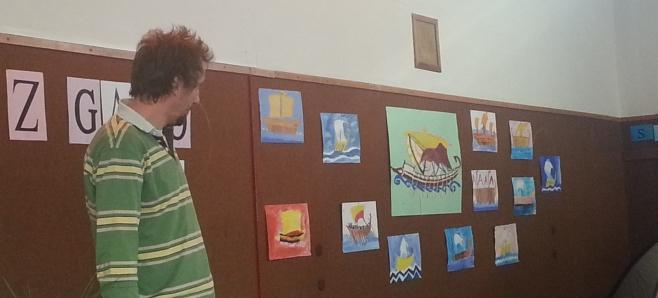 Tisti aprilski dan so v OŠ Srečka Kosovela v Sežani svojo ladjo pritovorili Argonavti. Učence četrtih razredov je obiskal ilustrator Damijan Stepančič, ki jim je veliko povedal o grški mitologiji, ladjah, o življenju ilustratorja in Argonavtih. Predvsem pa so učenci njemu predstavili kako vse so se pripravljali v okviru festivala: nastala je himna Argonavtov, zbirka slik ladij, uprizoritev dela zgodbe, ples, predvsem pa veliko odličnih vprašanj. Zelo pestra je bila tista kratka urica in aktivnosti učencev so povsem očarale direktorja založbe in odgovorno urednico, ki sta bila poleg. Še enkrat se je potrdilo, da je bila tematika festivala prav izbrana, da moramo razmišljati o njej - odgovorno urednico so prav pretresla zrela razmišljanja učencev o vprašanju, ki ga je postavil Morris Gleitzman v svoji knjigi: 'Zakaj ljudje začenjajo vojne, čeprav vedo, da se bo zgodilo toliko žalostnih stvari?'.