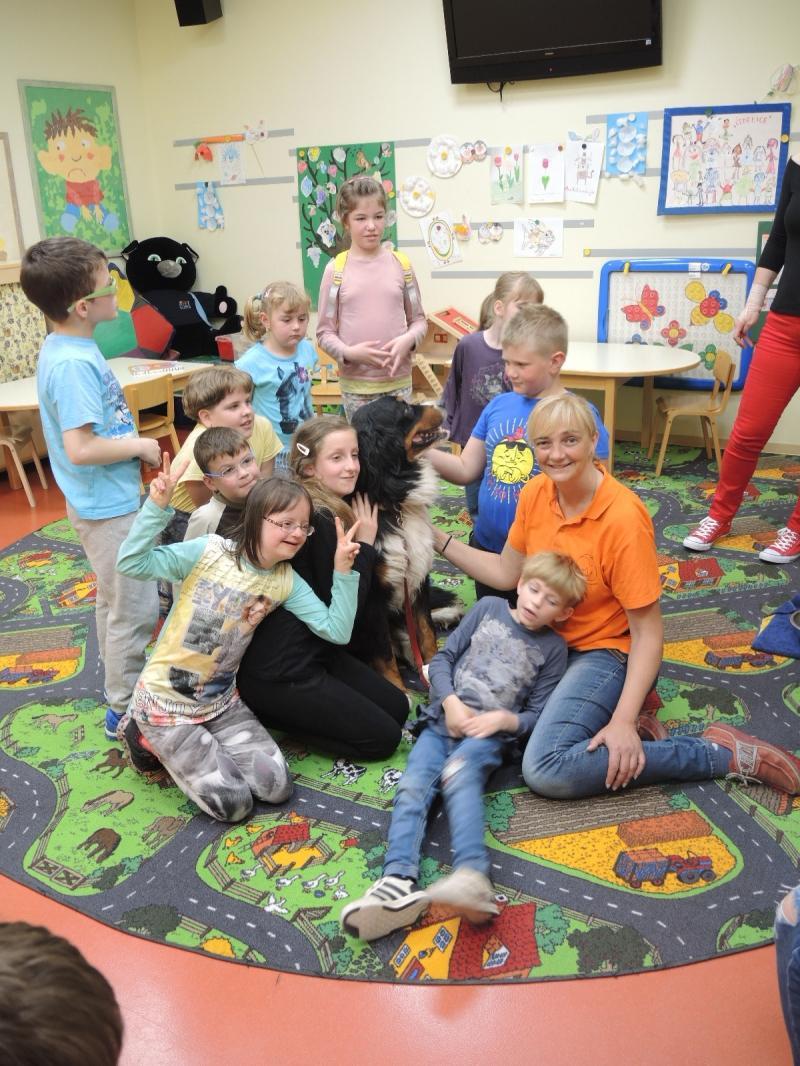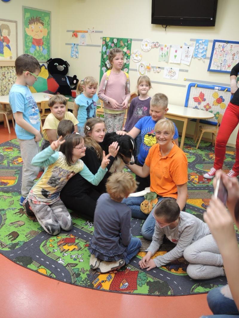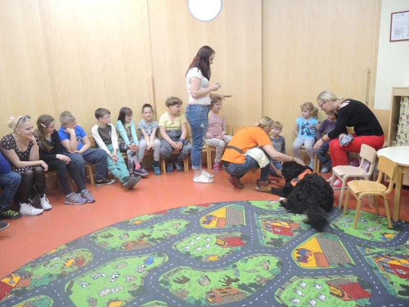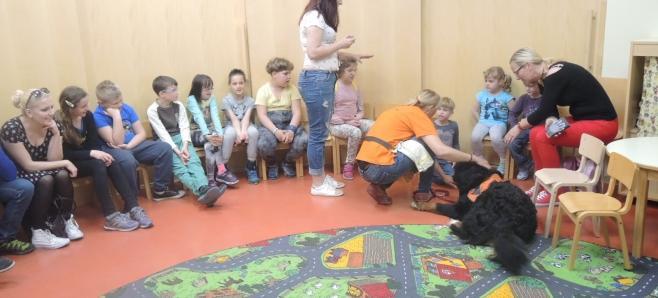 Dvakrat nas je obiskala vodnica Irena in enkrat s seboj pripeljala psičko Išo, drugič pa psička Sergia. Kužkom so otroci prebrali pravljico, potem pa sta pokazala še nekaj trikov, ki jih poznata. Otroci so v družbi kosmatincev zelo uživali in tudi najbolj zadržani so se opogumili ter pobožali mehko dlako.