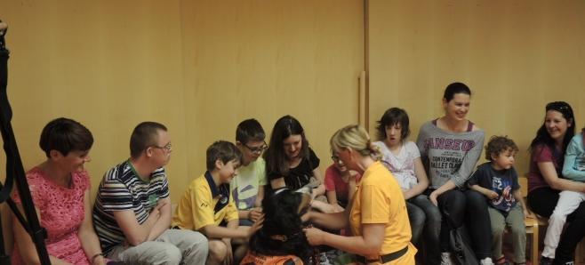 Otoci iz društva Verjamem vate so se 13. maja skupaj s psičko Išo podali v domišljijski svet pravljic. Iša je terapevtska psička Iša, otroci so jo spoznavali, jo božali in ji prebirali pravljice. Srečanje v Knjižnici Domžale je vodila prostovoljka Irena iz društva Ambasadorji nasmeha.