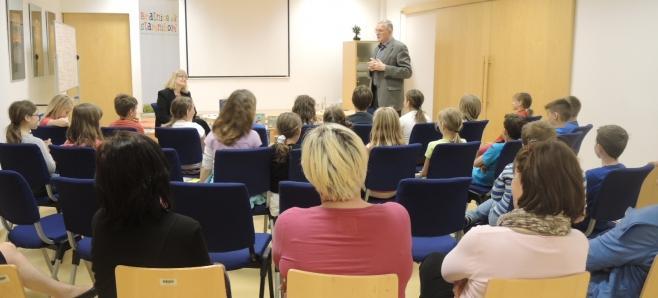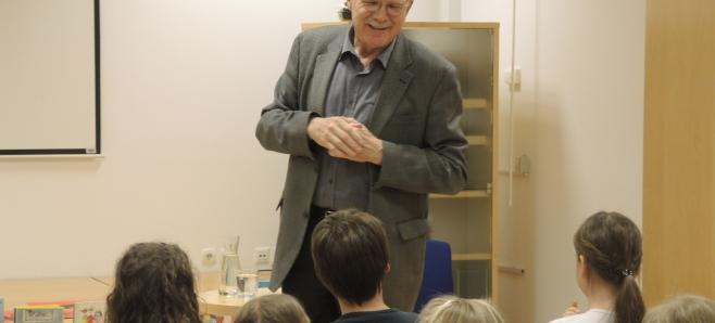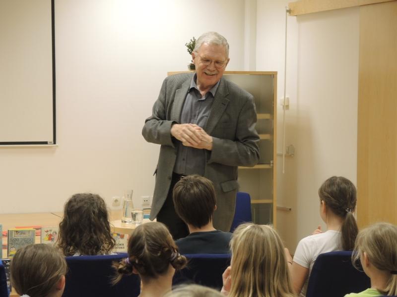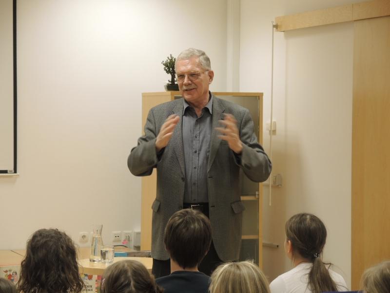 V prijetnem in sproščenem pogovoru, nam je pisatelj pripovedoval dogodivščine iz svojih otroški let, nas seznanil s svojimi knjigami, odgovarjal na vprašanja...