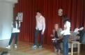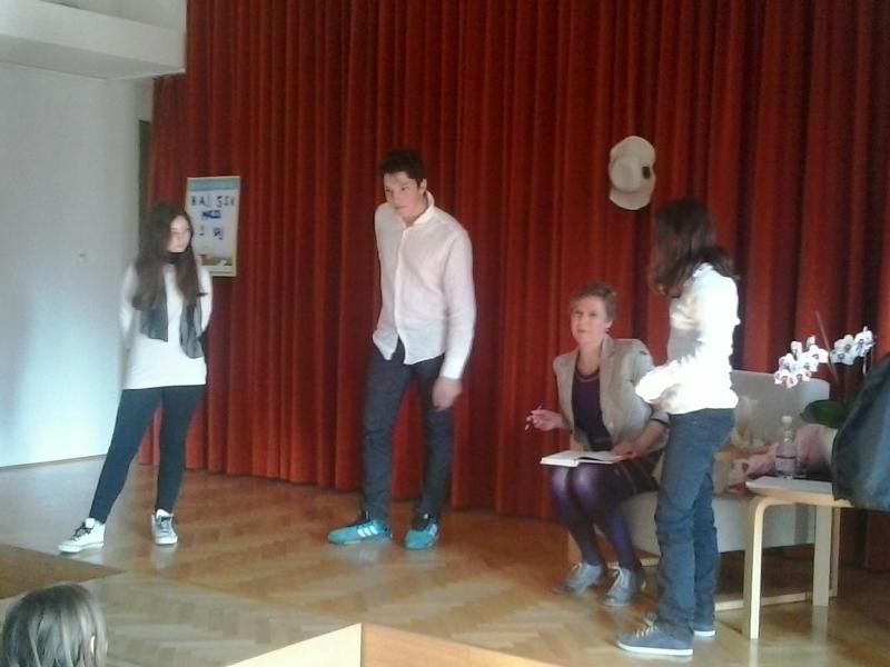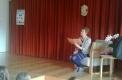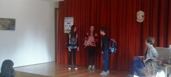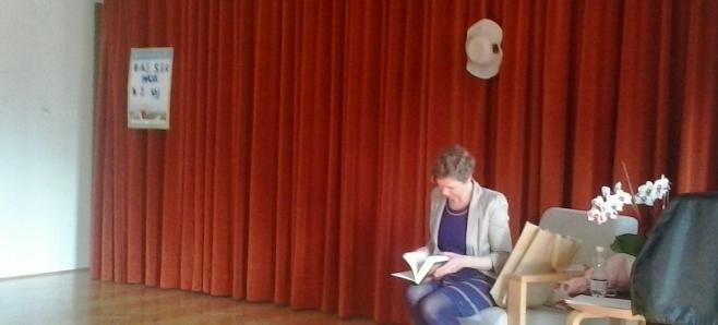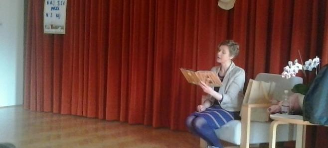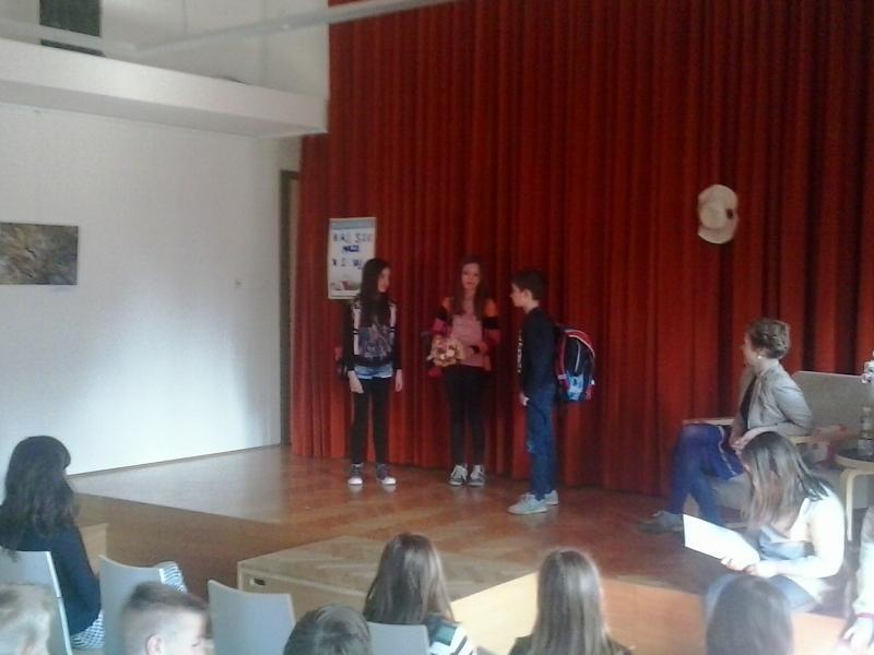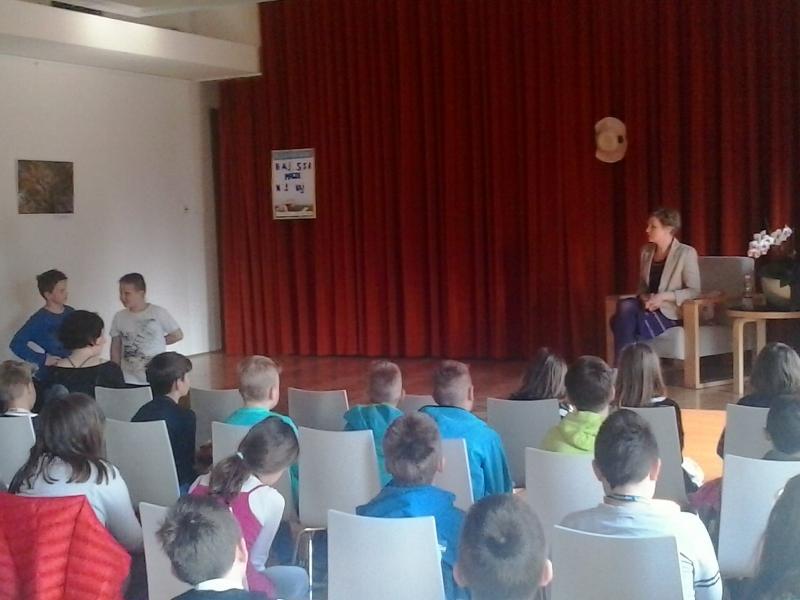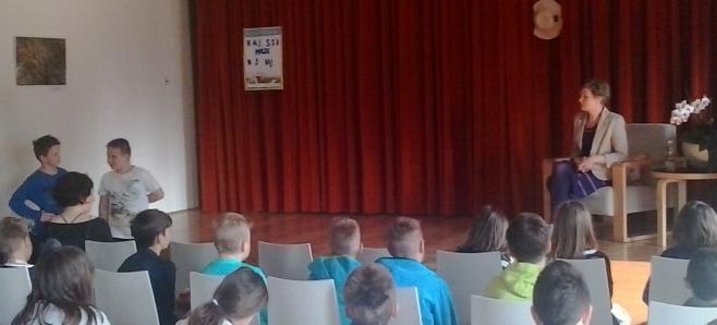 Po uvodnem pozdravu smo poslušali pesmi, ki so jih brali učenci, s pantomimo smo ugibali naslove del, ki jih je avtorica izdala, starejši učenci, ki so ves program povezovali, pa so vso občinstvo držali pokonci do zaključka ...