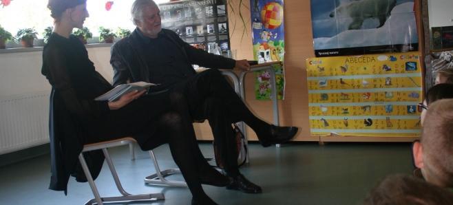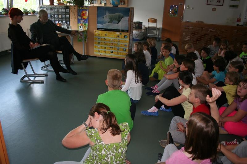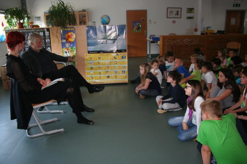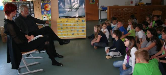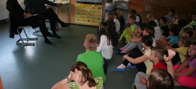 Učenci četrtega razreda so prijetno pozdravili pisatelja z ljudskim plesom. Skozi srečanje smo klepetali o avtorjevem življenju, ustvarjanju in njegovih delih, namenjenih otrokom. Otroci so avtorjeve knjige dobro poznali, zato so ga zasuli z obilico vprašanj.