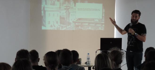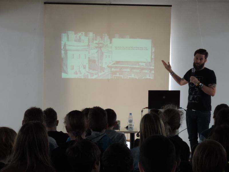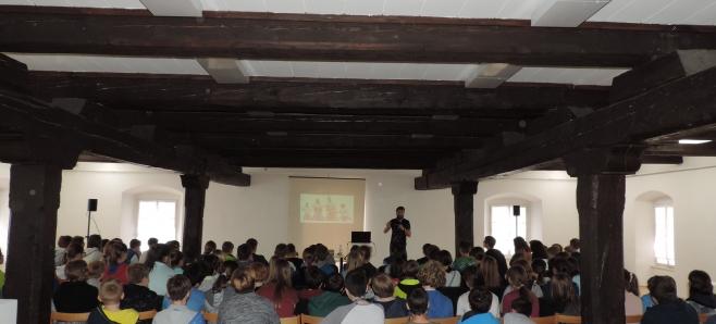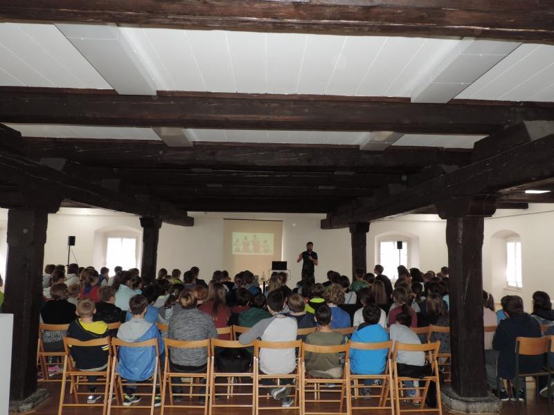 110 učencev iz OŠ Idrija in OŠ Spodnja Idrija se je 9. maja 2017 v galeriji Mestne knjižnice in čitalnice Idrija srečalo z mladinskim pisateljem Žigo X Gombačem. Za uvod so mu pripravili dva skeča – prizorčka iz njegovih del, potem pa je besedo povzel avtor in na zanimivo-zgoščen način predstavil svojo bogato ustvarjalnost. Čeprav je bil zelo izčrpen, so mu učenci na koncu zastavili še nekaj vprašanj in za spomin dobili bralna znamenja z dragocenim Žigovim podpisom.
