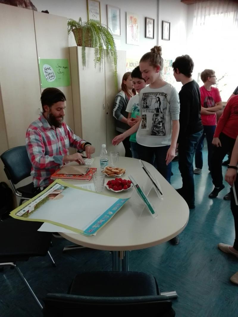 Pisatelj Žiga X. Gombač je gostoval na OŠ Venclja Perka in se razgovoril v svojih odgovorih na vprašanja, ki so jih pripravili učenci. Po srečanju je otroke, ki so pridno prebirali NK svoboda, razveselil še z avtogrami.