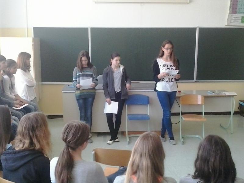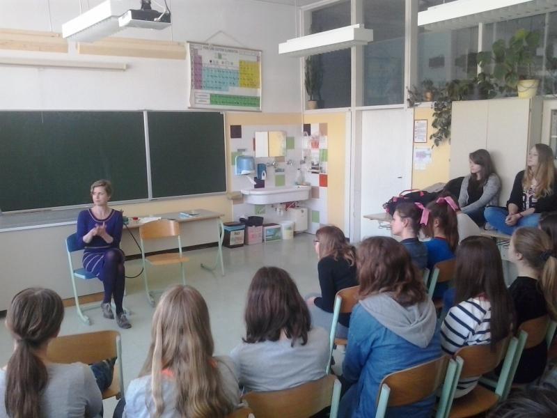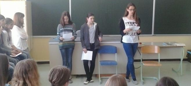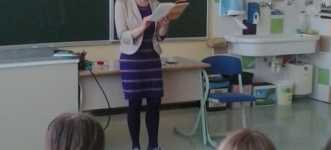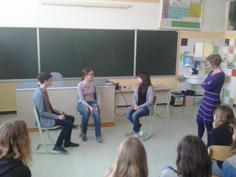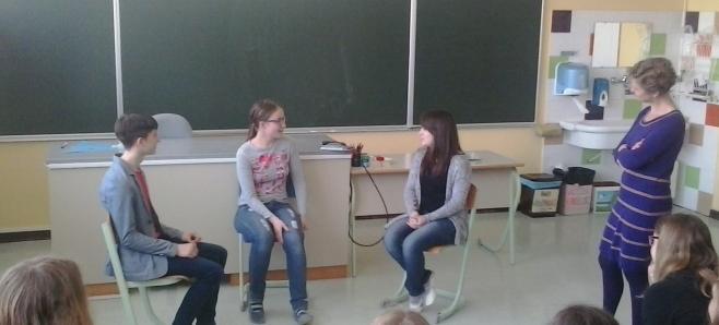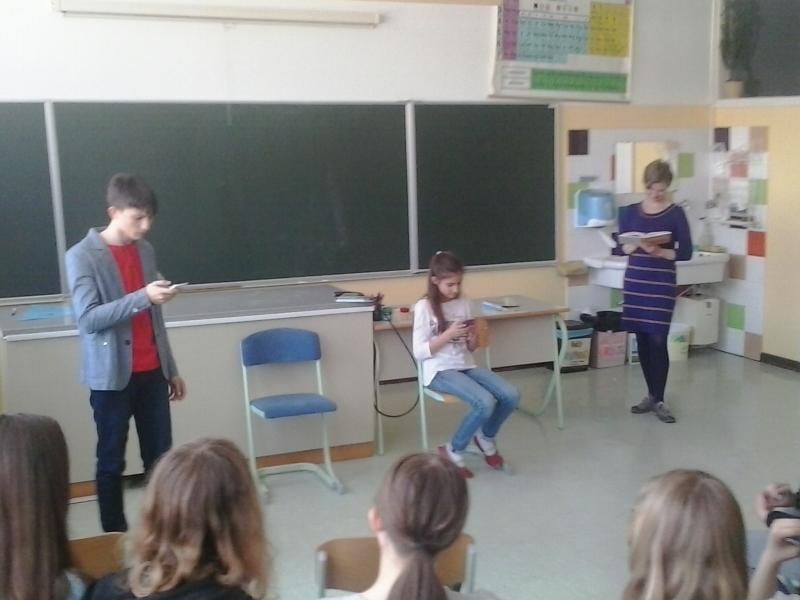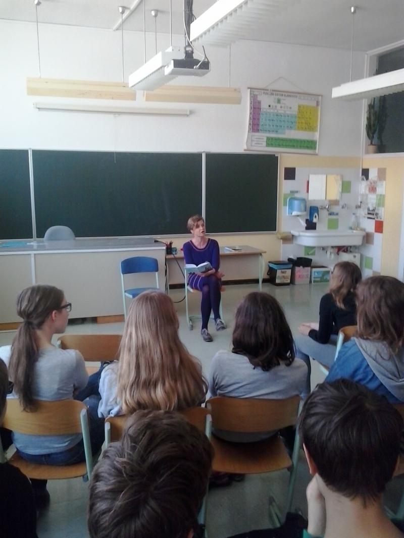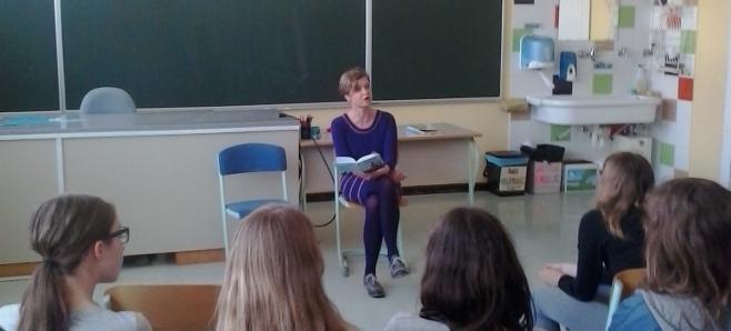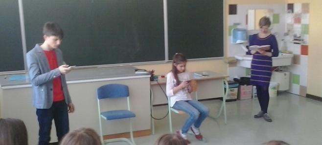 Avtorica se ravno pripravlja na dramatsko uprizoritev omenjenega mladinskega romana, zato se je tudi nekaj učencev preizkusilo v vlogi igralcev.