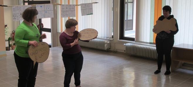 Kratki uvodni predstavitvi je sledil strip v živo, kjer so uporabnice v igri prikazale, kako se ljudje med seboj razlikujemo v mišljenju, navadah, okusih ipd. Sledila je otvoritev razstave, kjer smo se pogovarjali o različnih zgodbah v razstavljenih stripih.