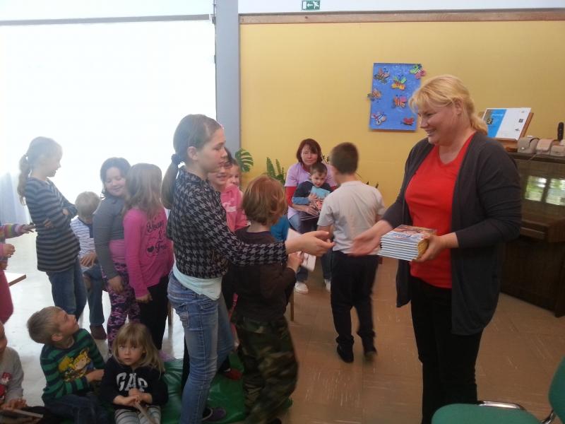 Kot imamo v navadi, je tudi tokrat avtorica obdarila učence podružnične šole s knjigami.