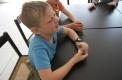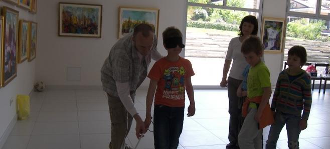 V tretji skupini so si učenci podajali žogo za slepe in slabovidne. Z zavezanimi očmi in belo palico v roki so izkusili, kakšen je občutek, če te obdaja tema.