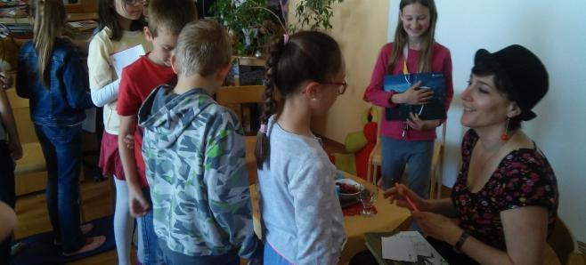 Pisateljica Maša Ogrizek je gostovala na OŠ Preserje pri Radomljah. Razvila se je krasna izmenjava mnenj, učenci se skorajda niso mogli raziti, pa tudi pisateljica je bila navdušena. Res krasno!