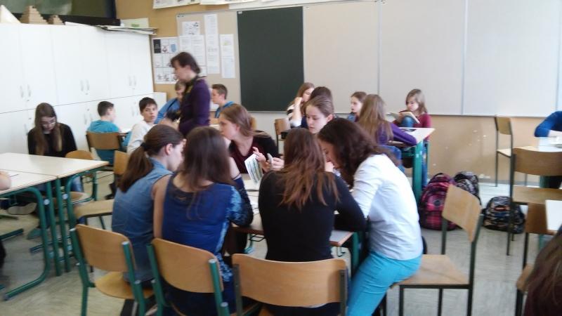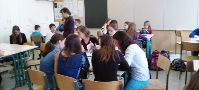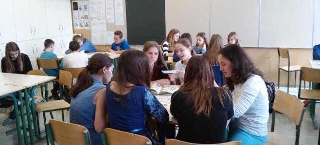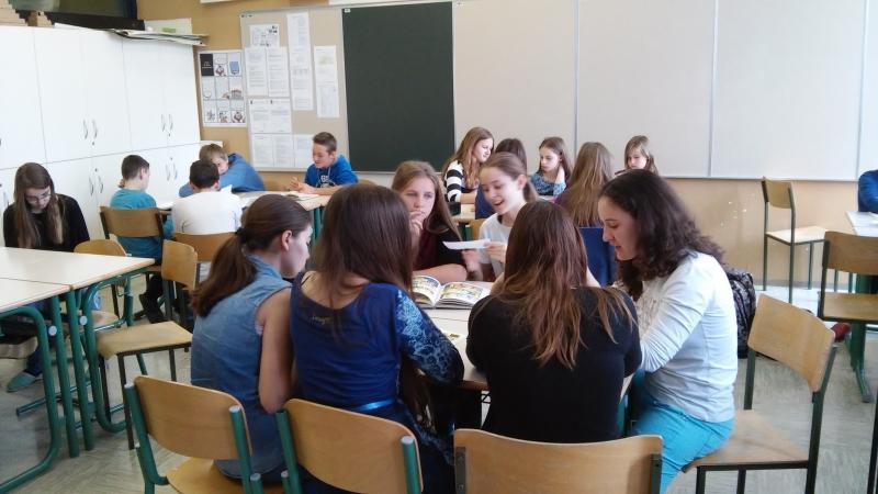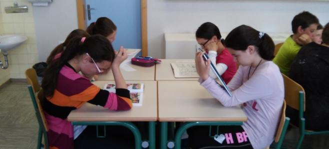 Učenci OŠ Martina Krpana, ki so risali stripe z Damijanom Stepančičem in jih že predstavili na Kulturnem bazarju, so se predstavili še sovrstnikom, Tilka Jamnik pa jih je informirala o stripu in predstavila nekaj primerov. Na primerih stripov so povedali svoja mnenja in izpostavili tiste, ki spodbujajo kulturno sožitje. Prijetno druženje in sodelovanje!