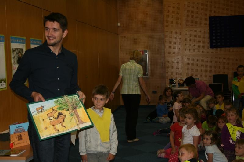 Šest vrtčevskih skupin, kar pomeni približno 120 otrok se je srečalo z Žigo X. Gombačem. Pisatelj jim je živo predstavil zgodbo o levih in strahu ter zakaj je izginil Ljubljanski grad (Skrivnosti mladih levov in Dan, ko je izginil ljubljanski grad).