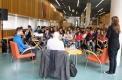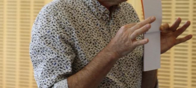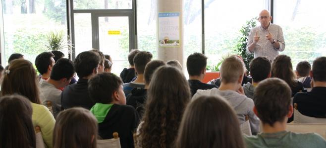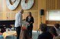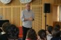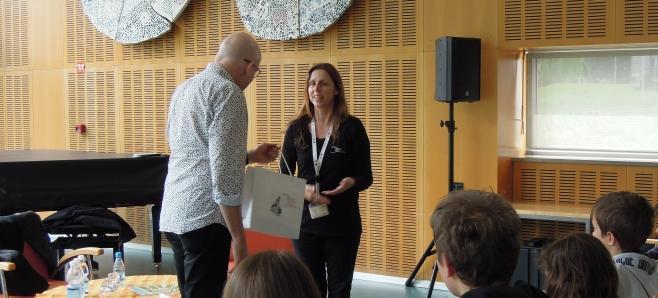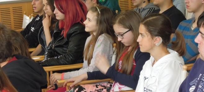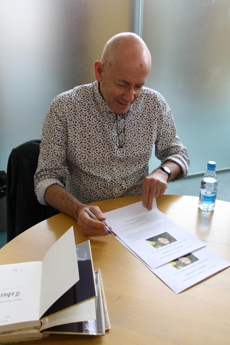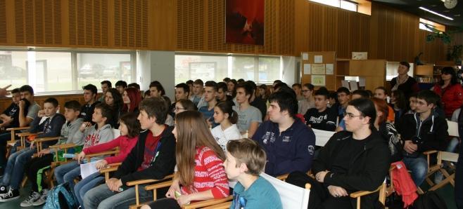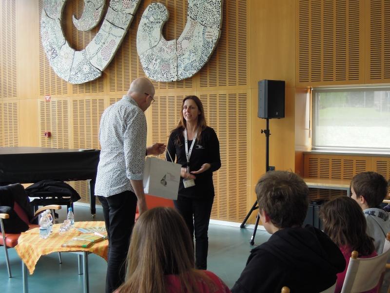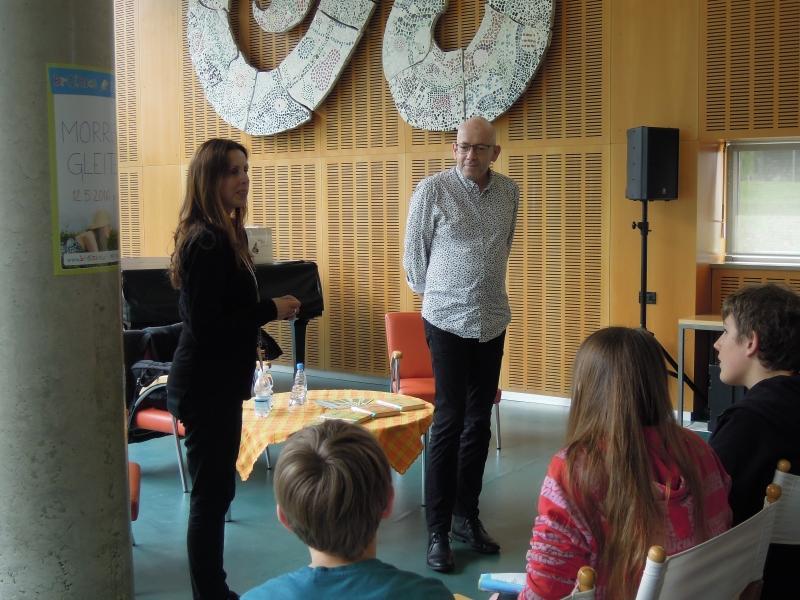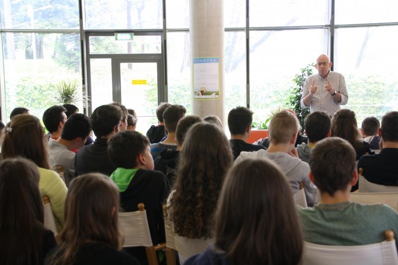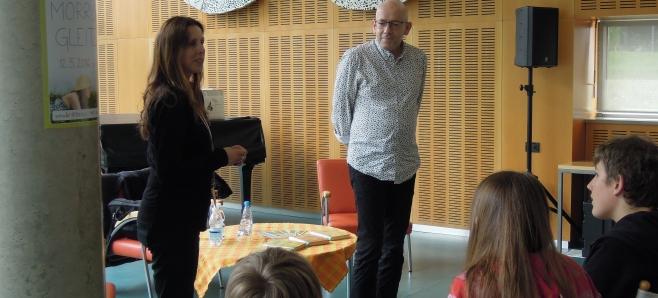 Od uvodnega trenutka, ko je bil g. Gleitzman predstavljen, pa vse do konca srečanja je bilo med poslušalci slutiti zbranost in dobesedno smo čutili, kako jih je uročil. To, da je govoril v angleščini, ni bila nikakršna težava, prevajalec sploh ni bil potreben. Po dobri uri, ko je bil čas za vprašanja, pa so se roke kar dvigale in vprašanja so sproti presenačala našega gosta.