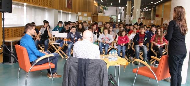 V četrtek točno opoldan smo se zbrali "pri klavirju" v Goriški knjižnici Franceta Bevka. Osnovnošolci in srednješolci so zasedli svoja mesta in presenetljivo tiho čakali na našega gosta.
