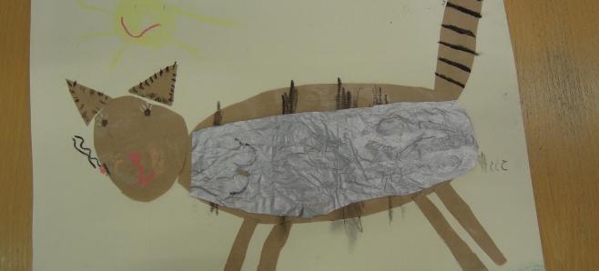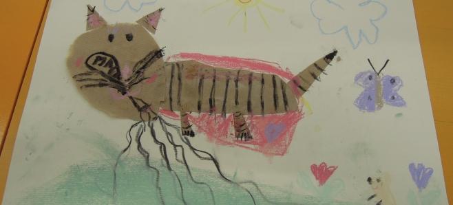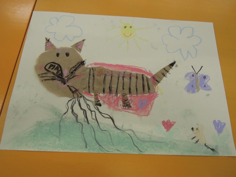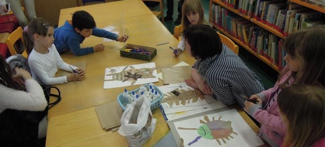 Sledilo je ustvarjanje z go. Ano Zavadlav, ki je otroke popeljala v svet ustvarjanja s kolažem, kredo in ogljem.