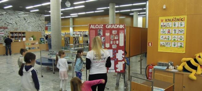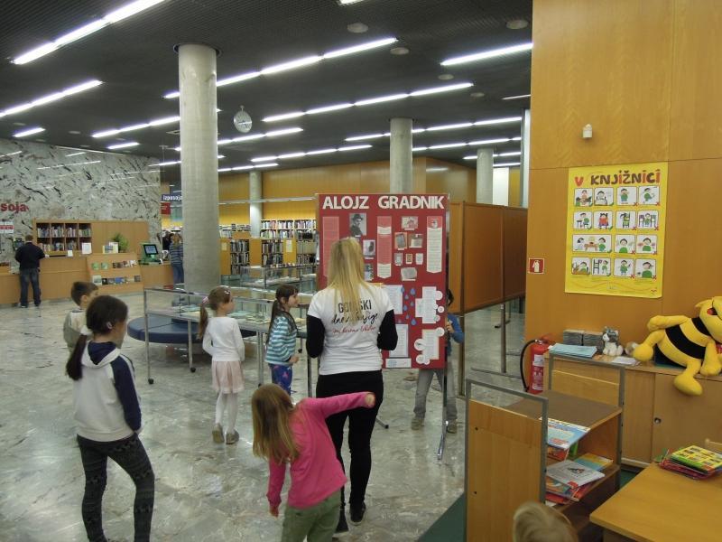 Kolegici Manja in Polona sta pripravili pester program:likovno sta uprizorili pesem Narobe svet, avtorja Alojza Gradnika in pripravili plakat ob petdesetletnici smrti pesnika.