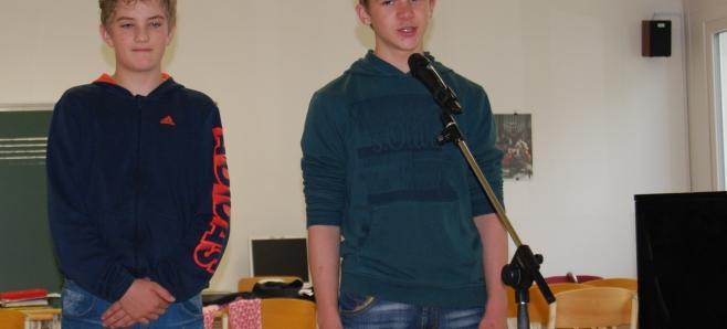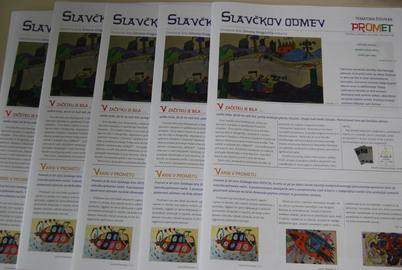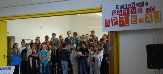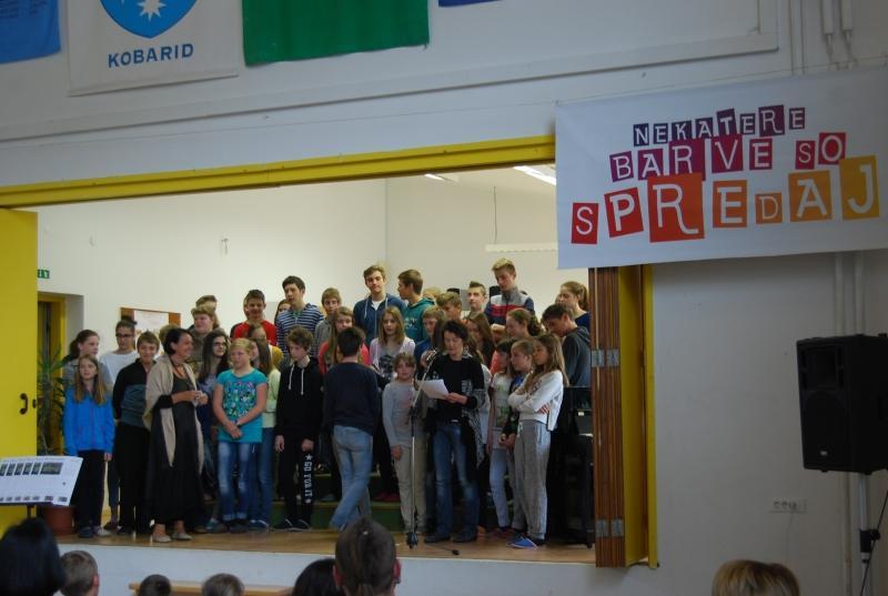 Kulturno srečanje vseh učencev kobariške šole, naslovljeno z verzom lanskoletne devetošolke "Nekatere barve so spredaj", je bilo poleg glasbenih točk priložnost, da sta Vid Uršič in Jure Koren zbrane spodbudila k branju nove tematske številke šolskega časopisa Slavčkov odmev – Promet.