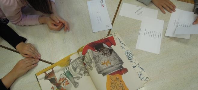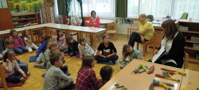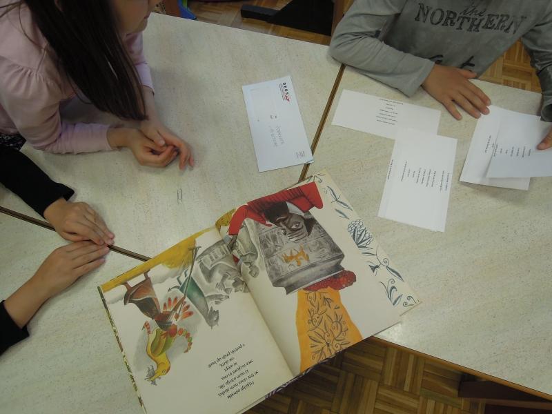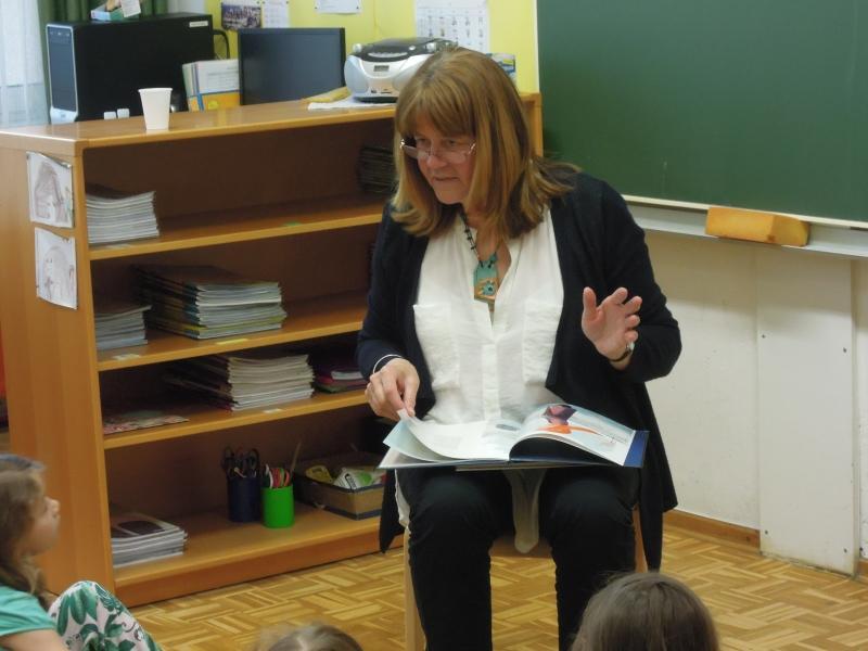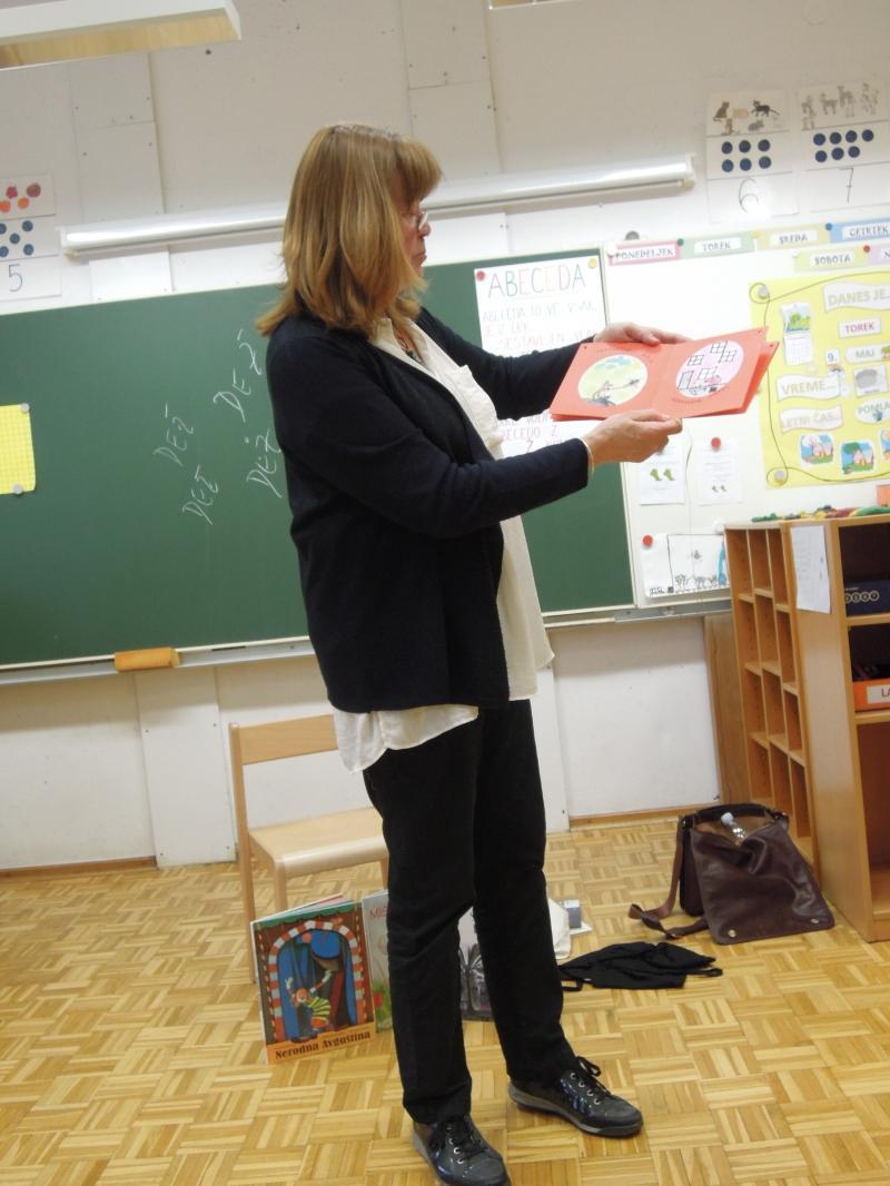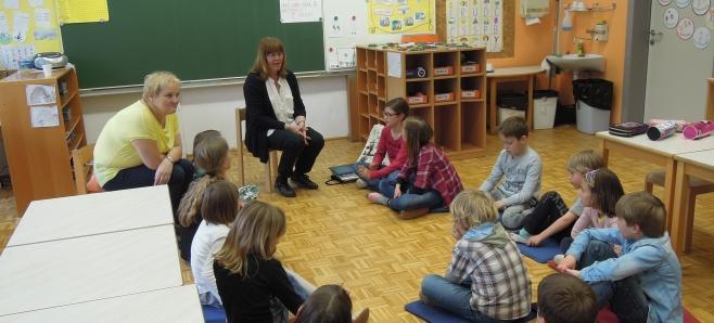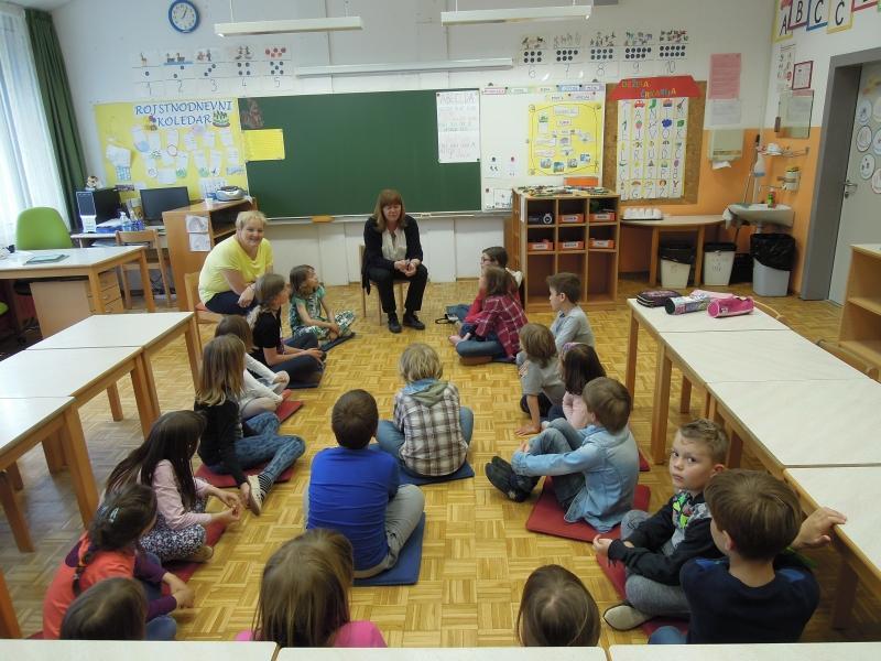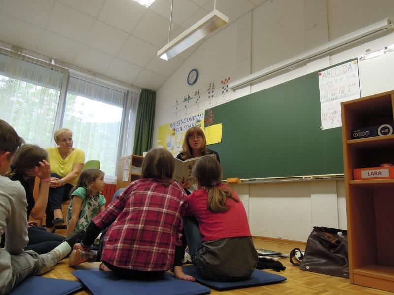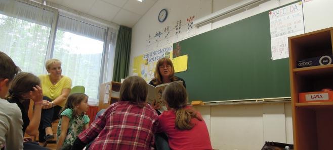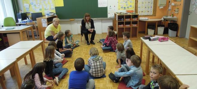 Otroci pravljičnega krožka (prva triada) so z veseljem sprejeli obiskovalko in ji tudi prisluhnili. Pokomentirali so zgodbe, ilustracije, njihov pomen. Pomenili so se o poeziji in njenem namenu, na koncu pa so se še poigrali z Zdravljico.
