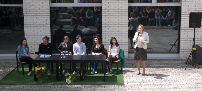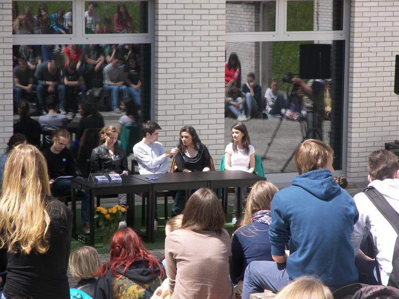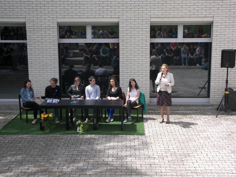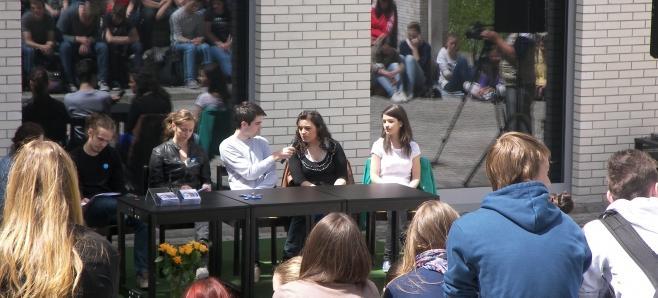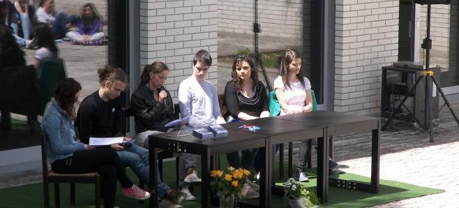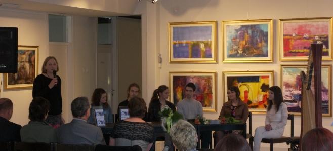 Za interpretacijo pesmi na predstavitvi zbirke 14. maja v Knjižnici Tolmin so poskrbeli Ema Kravanja, Iza Furlan in Luka Sinček. V glasbeni svet sta nas popeljali harfistki Maša Mozetič in Vita Kovačič. Pogovor s pesnico in ilustratorko, obe maturantki 2013 Gimnazije Tolmin, je vodil Martin Jerončič.