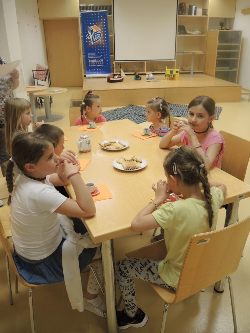 V Knjižnici Domžale smo v sredo 17.5.2017 zaključili sezono Pikinih čajank. Pikina čajanka je preplet pripovedovanja zgodb iz Pike Nogavičke, ustvarjanja in igranja. Ko smo se napili čaja, pojedli piškote ter prebrali pravljico, nas je obiskala tudi pika Nogavička. Izdelali pa smo tudi prav poseben poletni spomin.