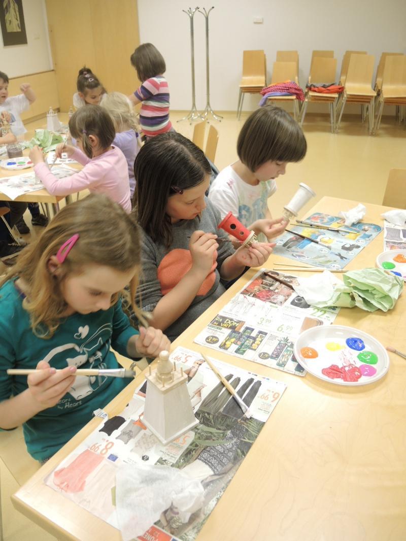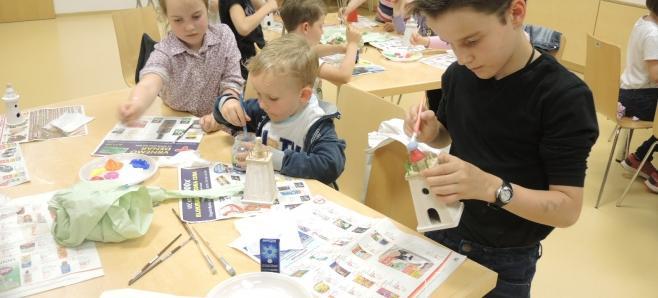 V Knjižnici Domžale so otroci v sredo, 14. maja, ob skodelici Pikinega čaja in Pikinih piškotih poslušali zgodbo, zatem pa ustvarjali čudovite svetilnike.