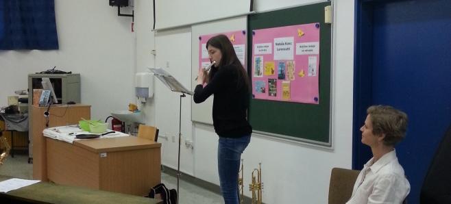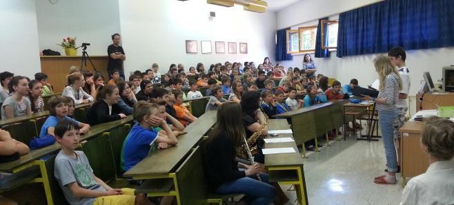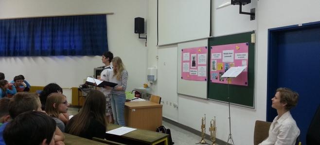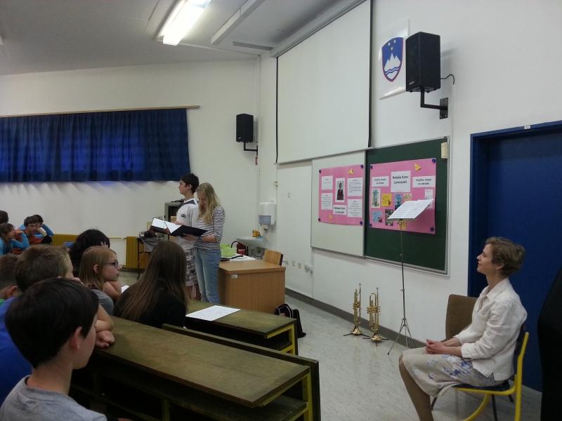 Petošolci in šestošolci OŠ Idrija so se v sredo, 20. maja 2015, družili s pisateljico v živo. Gostjo so pričakali v predavalnici šole. Voditelja programa sta nagovorila zbrane in že se je pisateljica soočila z vprašanji povezovalcev, med njimi je bilo tudi nekaj manj običajnih, npr. katero jed ima najraje oziroma jo dobro skuha. Osmošolci so pripravili dramatizacijo zgodbe Delo je lahko veselo iz pisateljičine knjige Kakšno drevo zraste iz mačka. Ustvarjalka jim je prebrala odlomek iz Društva starejših bratov in jim kratko predstavila vsebino. Dotaknili so se tudi drugih knjig , tudi najnovejše Lica kot češnje. Dogajanje so popestrili trije glasbeni nastopi. V zaključnem delu pa so poslušalci zastavili nekaj vprašanj, ki jih kar ni zmanjkalo.