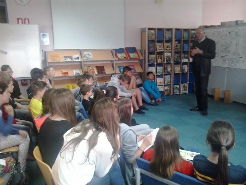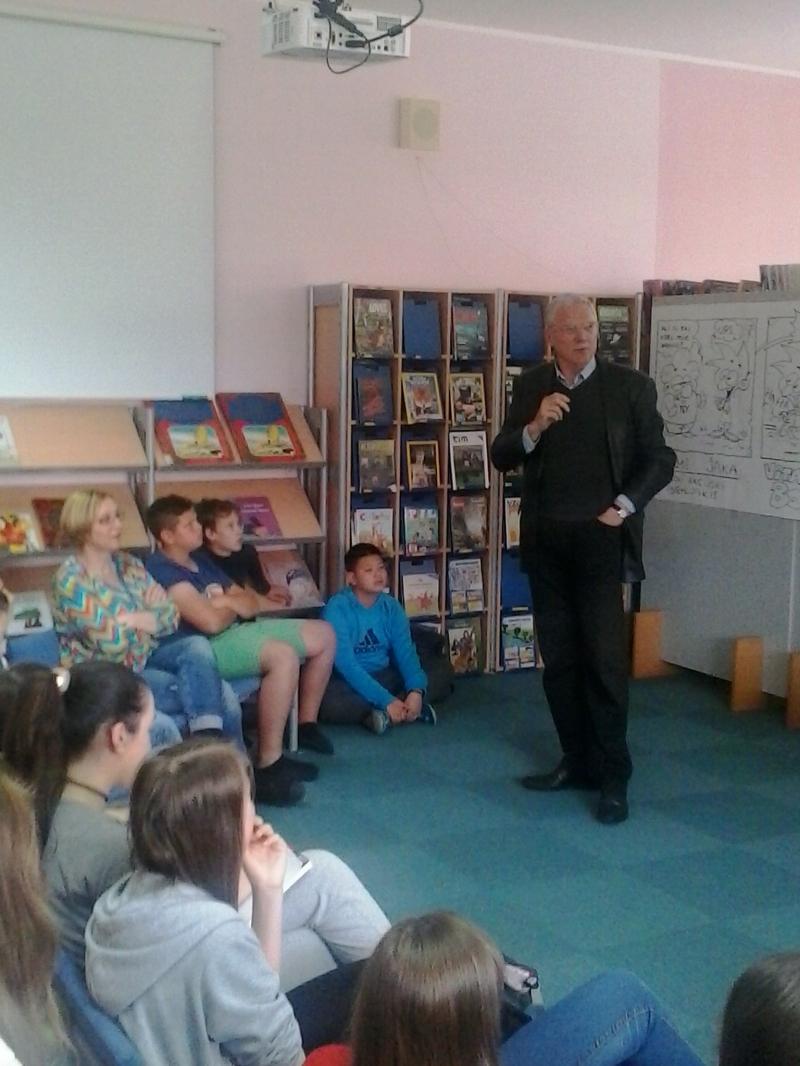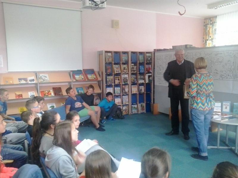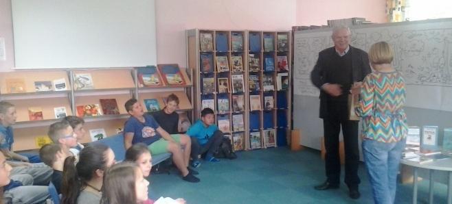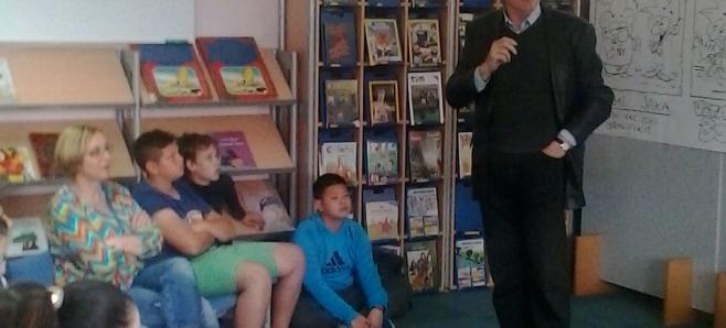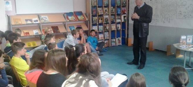Srečanje Slavka Pregla s sedmošolci v knjižnici OŠ Marije Vere je potekalo v sproščenem vzdušju. Učenci, ki so se na srečanje pripravili s polno košaro vprašanj, so od avtorja izvedeli marsikatero dogodivščino iz njegove mladosti, literarnega ustvarjanja, vsebini njegovih del ... In kje pisatelj črpa navdih za pisanje? V skrajni sili ga kupi tudi v trgovini!