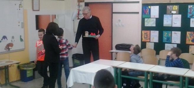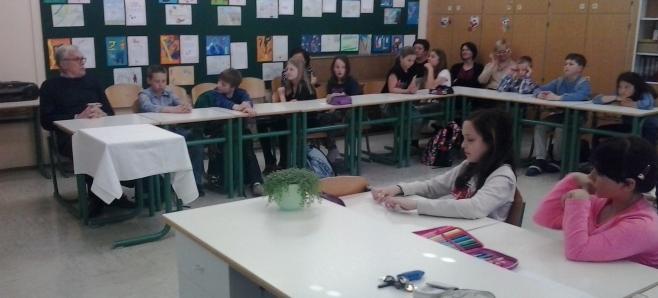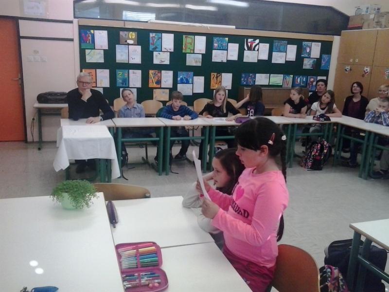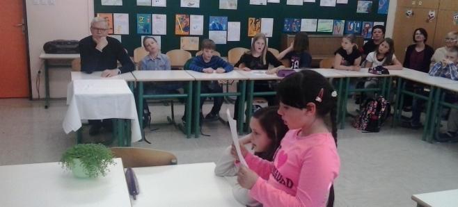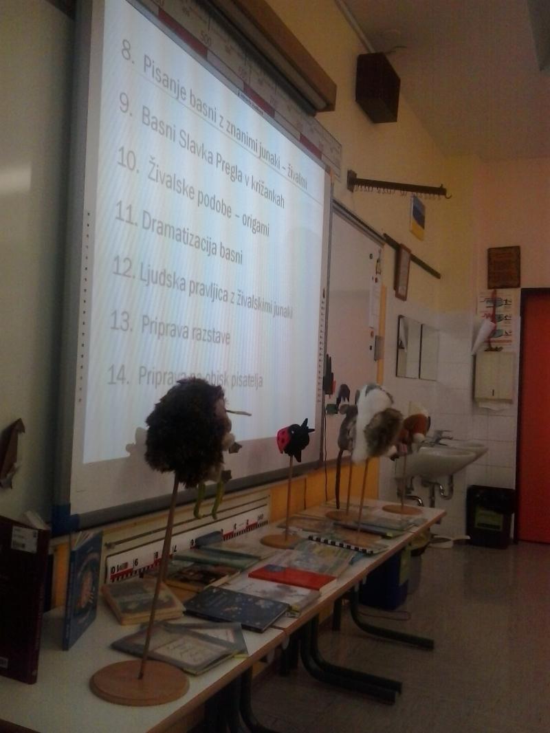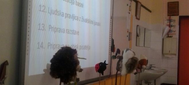 Učenci 5. razreda so brali basni in poustvarjali na različne načine; tako smo bili na srečanju presenečeni nad ilustracijami, kratkimi uprizoritvami, križankami, pestrim izborom vprašanj za avtorja ... Skratka, srečanje je minilo v hipu!