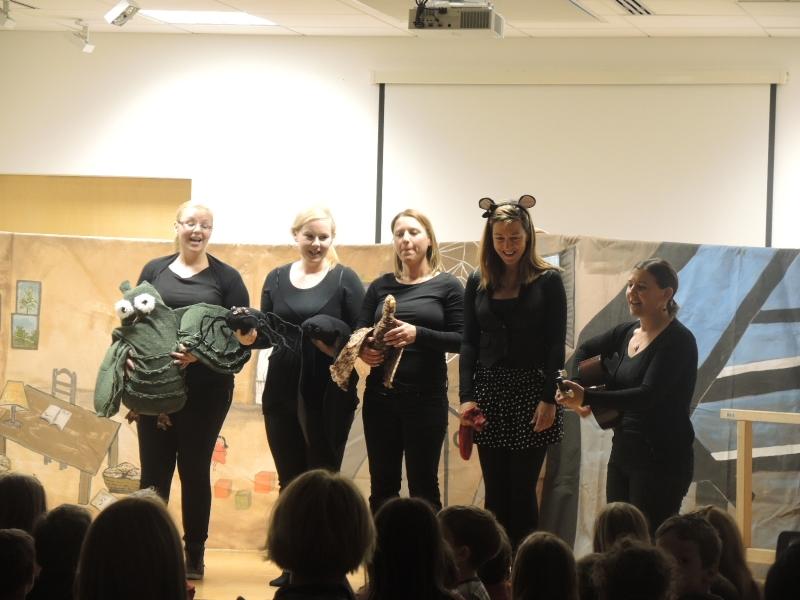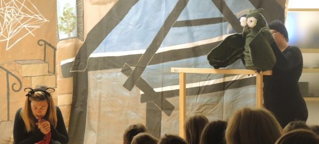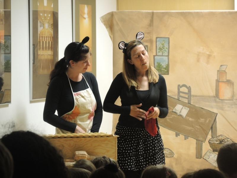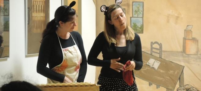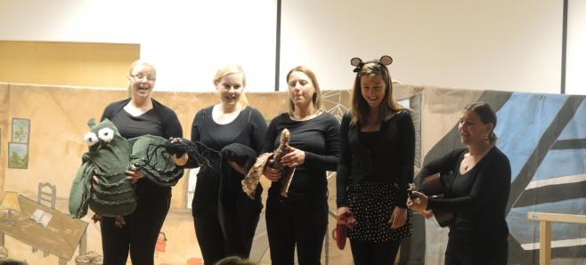 Vsi otroci so si najprej ogledali predstavo O miški, ki je zbirala pogum (po pravljici Nine Mav Hrovat), v izvedbi strokovnih delavk Vrtca Domžale.