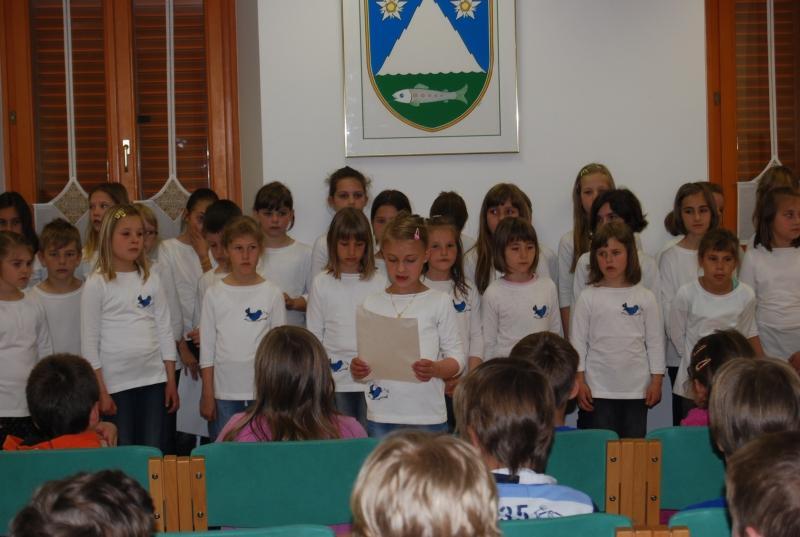 V ponedeljek, 12. maja 2014, smo se v Domu Andreja Manfrede zbrali na prireditvi Radi beremo in pojemo. Šest otroških pesmi različnih slovenskih pesnikov so učenci najprej prebrali, nato pa je uglasbene skladbe zapel zbor.