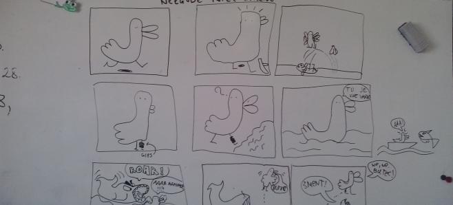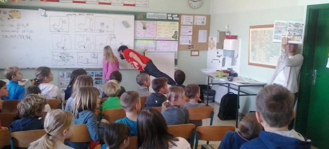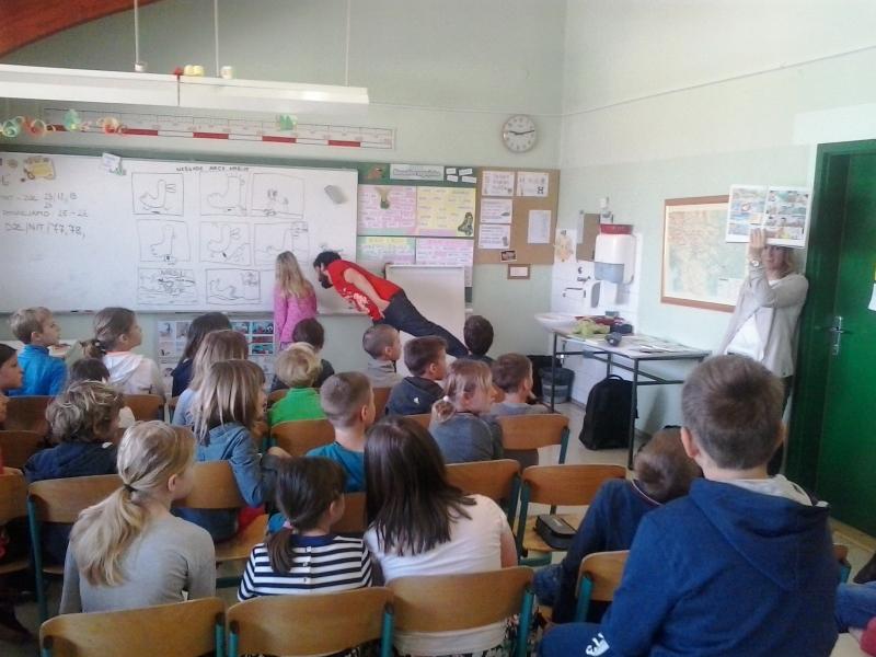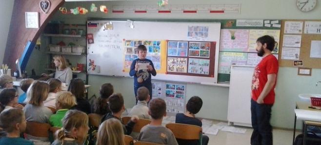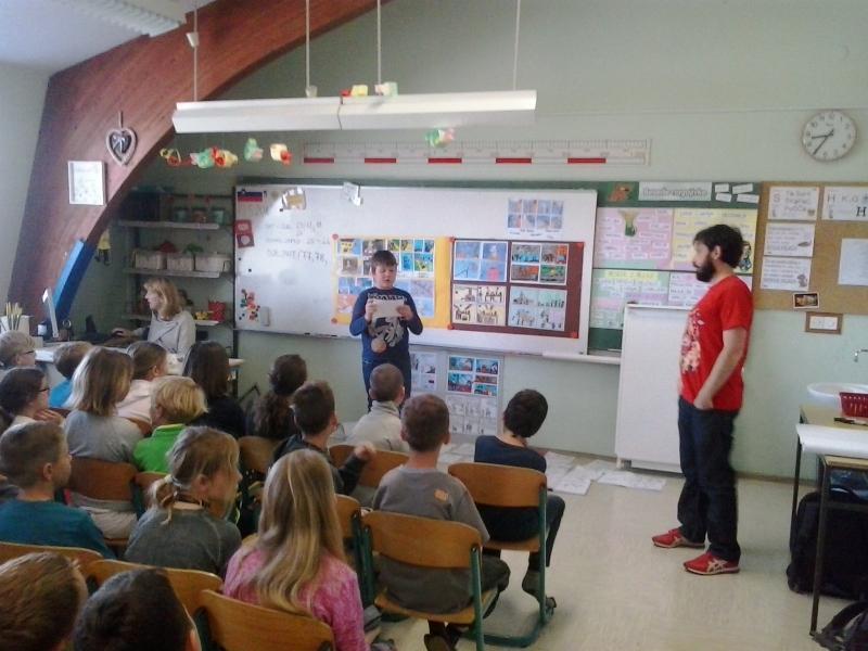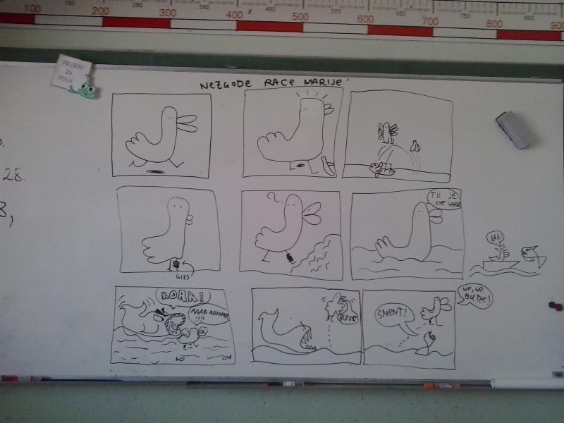 Otroci z Jarš so ilustratorja navdušili z obilico stripov, ki so jih pripravili za srečanje. Razred, opremljen s stripovskimi izdelki nas je več kot prijetno presenetil, nato pa nas je Ivan Mitrevski podučil o stripu, njegovih elemetih, tipičnih značilnostih, s pomočjo katerih je skupaj z učenci izdelal eno stripovsko tablo z nekaj kadri in tako je nastal kratek strip z naslovom Nezgode race Marije!