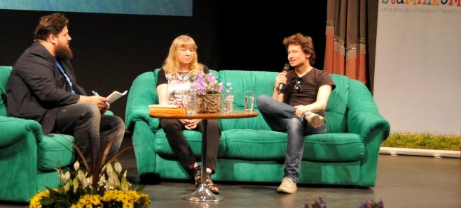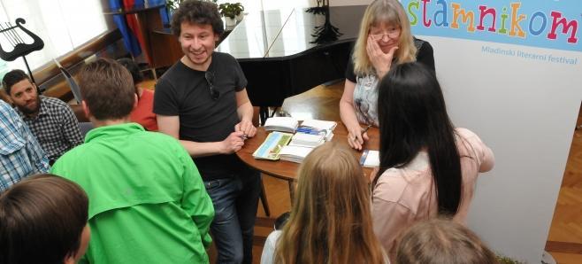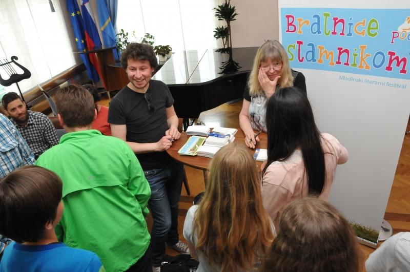 Prireditev v Kulturnem domu Franca Bernika je povezoval Boštjan Gorenc Pižama. Dvorana je bila polna obiskovalcev, podelili smo nagrade zmagovalcem literarnega natečaja, spoznali letošnja avtorja iz tujine, nemško pisateljico Carolin Philipps in danskega pisatelja Alena Meškovića, po dogodku so ju lahko učenci spoznali in poklepetali z njima ... Dogodek, od katerega smo odhajali z nasmeškom na obrazu!