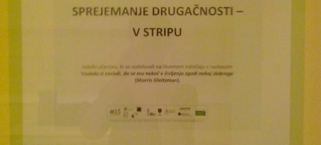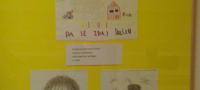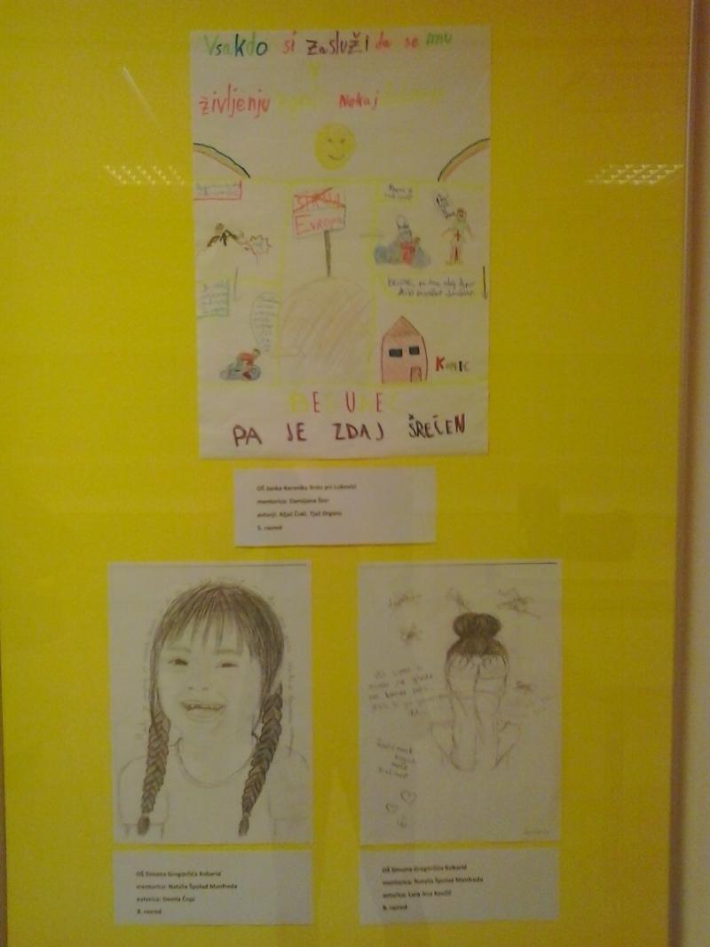 Likovni izdelki učencev, ki so sodelovali na likovnem natečaju z naslovom 'Vsakdo si zasluži, da se mu nekoč v življenju zgodi nekaj dobrega' (Morris Gleitzman).