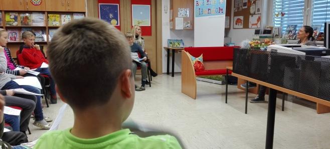 Gaja Kos je spregovorila o svojem uredniškem delu, tretješolcem pa je pomagala tudi pri urejanju prispevkov za razredno knjigo. Učenci so pripravili prav fino pogostitev, na koncu pa so avtorico presenetili še s pesmijo in domačo marmelado. Slastno je bilo!