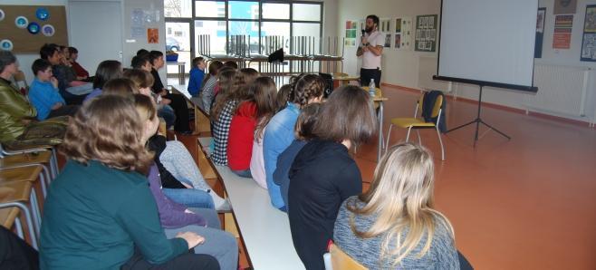 Ker je učencev veliko, je Žiga X Gombač trikrat pripovedoval o svojem ustvarjanju in zgodbah, ki jih piše.