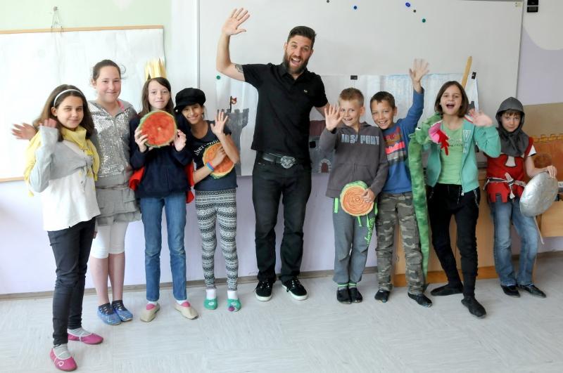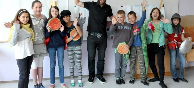 Na OŠ Trzin smo bili v petek, 8. maja, priča viteškemu srečanju. Učenci so nastopili z dramsko uprizoritvijo ljudske balade o zmajskemu vitezu Pegamu, z avtorjem pa smo klepetali o vitezih, ljubljanskem gradu in še marsičem ... Srečanje, bojevniško obarvano, je navdušilo vse prisotne!