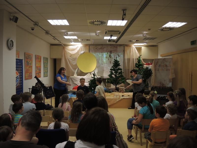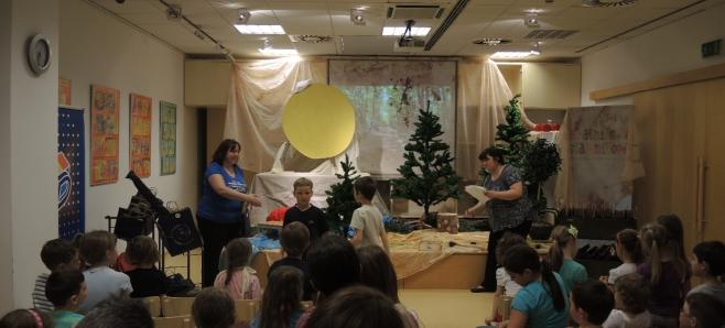 Otroci, ki so sodelovali pri projektu Želvino bralno popotovanje in otroci, ki so obiskovali Pravljične urice v Knjižnici Domžale so si v ponedeljek, 18. maja ogledali predstavo Vila Malina po pravljici Svetlane Makarovič v izvedbi dijakov dramsko-literarnega krožka Srednje medijske in grafične šole Ljubljana pod mentorstvom profesorice Barbare Iskra Šarec.