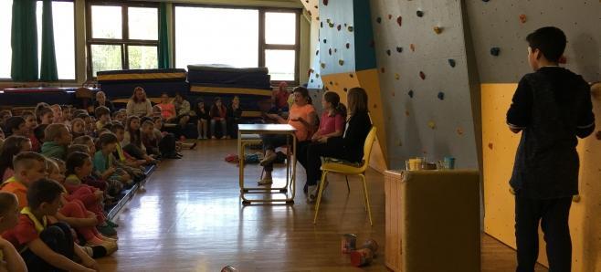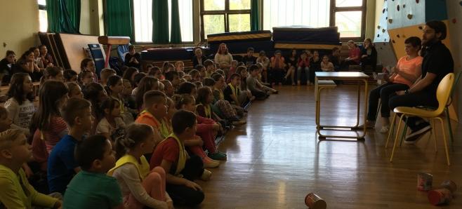 Učenci OŠ Livada so najprej odlično in suvereno zaigrali igrico Palčki Pospravljalčki, svojega gosta, pisatelja Žiga X. Gombača, pa so presenetili z nastopom prisrčnega otroškega pevskega zbora. Nato je ena od učenk pripravila zanimiv in razgiban intervju za gosta, ta pa je na vprašanja odgovarjal v svojem značilnem, tudi šaljivem slogu. Kasneje je pisatelj vse zbrane navdušil s pripovedovanjem prikupnih zgodb o Ljubljanskem gradu ...