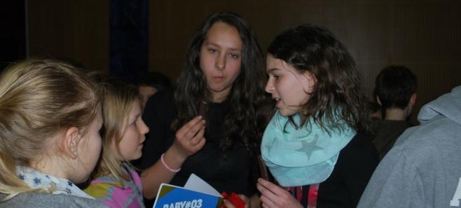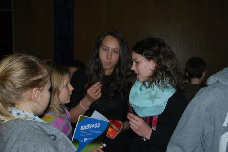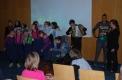 Po zaključeni predstavi so četrtošolci postavili nastopajočim nekaj vprašanj, na katera so rade volje odgovarjali . Potem pa je sledilo sproščeno druženje ob soku in piškotih.